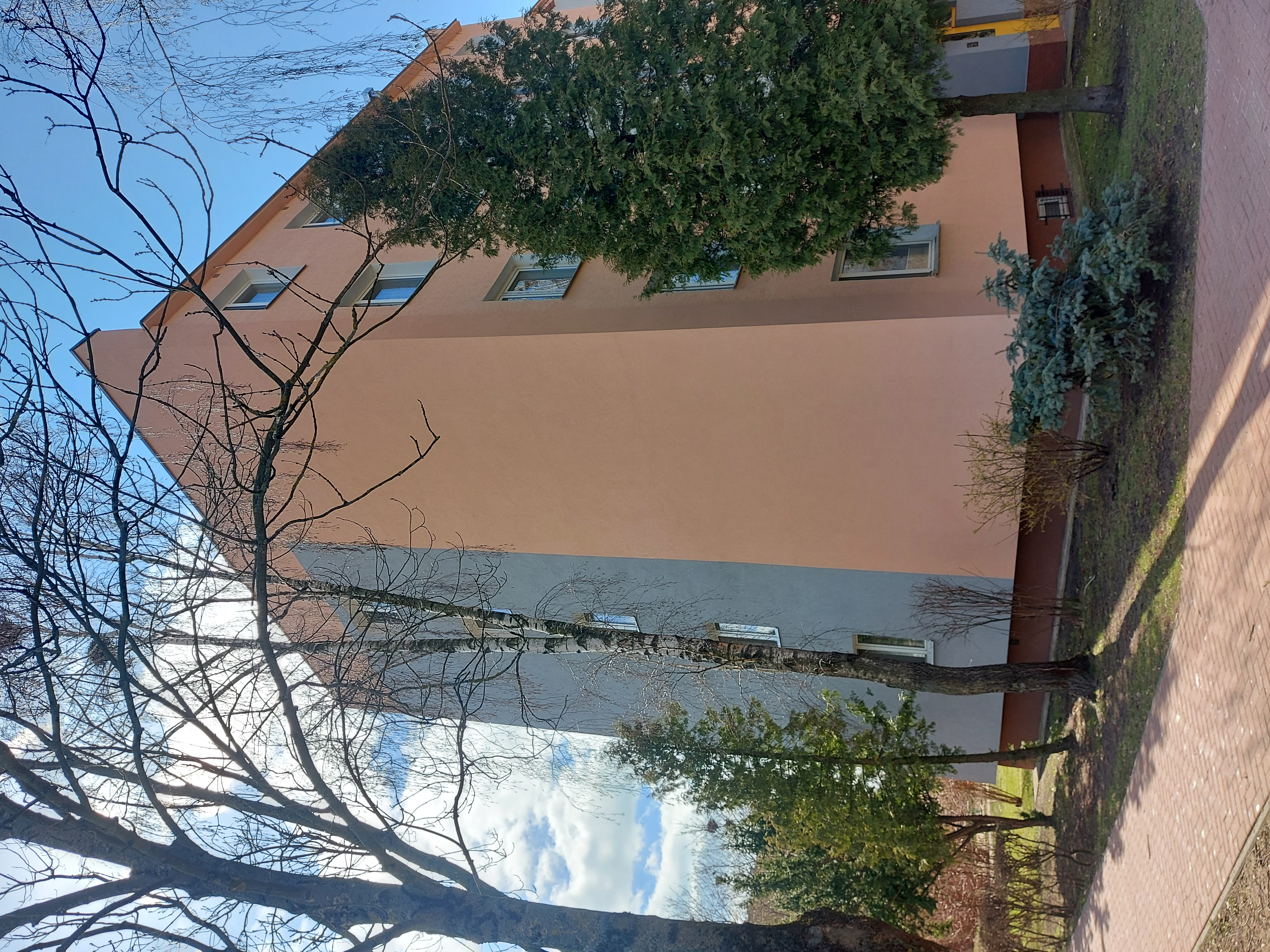 - Bolesława Chrobrego 9 - malowanie elewacji farbami fasadowymi - ściana zachodnia - prace remontowe wykonano siłami własnymi Spółdzielni